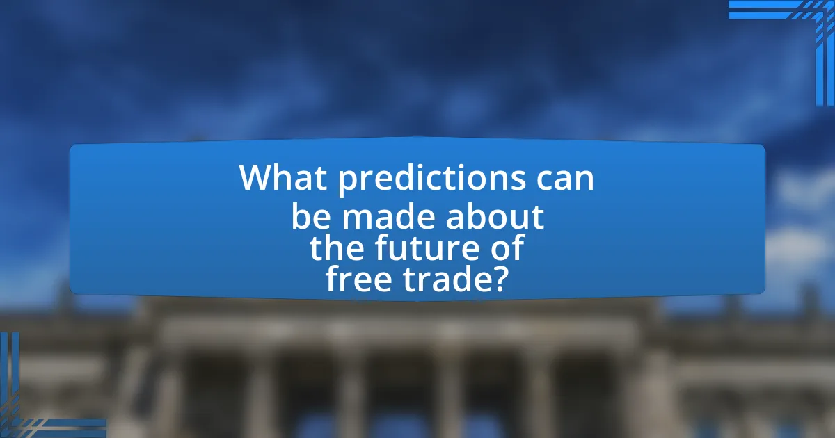 Predictions about the future of free trade indicate a trend towards increased regional trade agreements and digital trade facilitation. As global supply chains evolve, countries are likely to prioritize trade partnerships that enhance economic resilience and reduce dependency on single markets. For instance, the Regional Comprehensive Economic Partnership (RCEP), which includes 15 Asia-Pacific nations, exemplifies this shift towards regionalism. Additionally, advancements in technology are expected to streamline customs processes and reduce trade barriers, as seen in the implementation of digital trade agreements like the US-Mexico-Canada Agreement (USMCA). These developments suggest that while traditional multilateral trade agreements may face challenges, the future of free trade will likely be characterized by more localized and technologically driven frameworks.